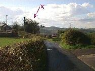 From about the same spot, looking west and down the hill, the spinney marked with the X |