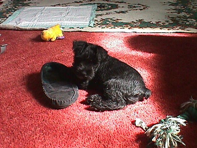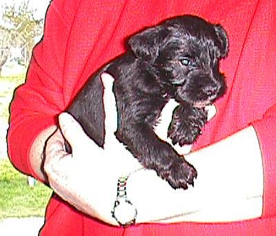 She had always wanted a Miniature Schnauzer so she found a local kennels, very small, who had just had a litter. I said that any puppy would have to be a bitch called Emma. When she visited she was told that because the father of the litter had Spice in his name, the litter would have Spice in their names, and one was to be called Barritz Spice Baby (Barritz is the kennel; name and their puppies all start with the letter "S"). What other puppy could we choose? Fate I call it.